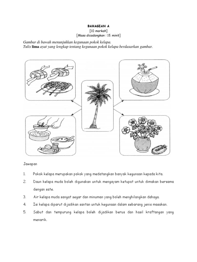 Inkubator Pintar by CikguEiman. Pokok kelapa mempunyai banyak kegunaan kepada manusia dalam kehidupan seharian. Soalan berikut berdasarkan gambar di bawah.